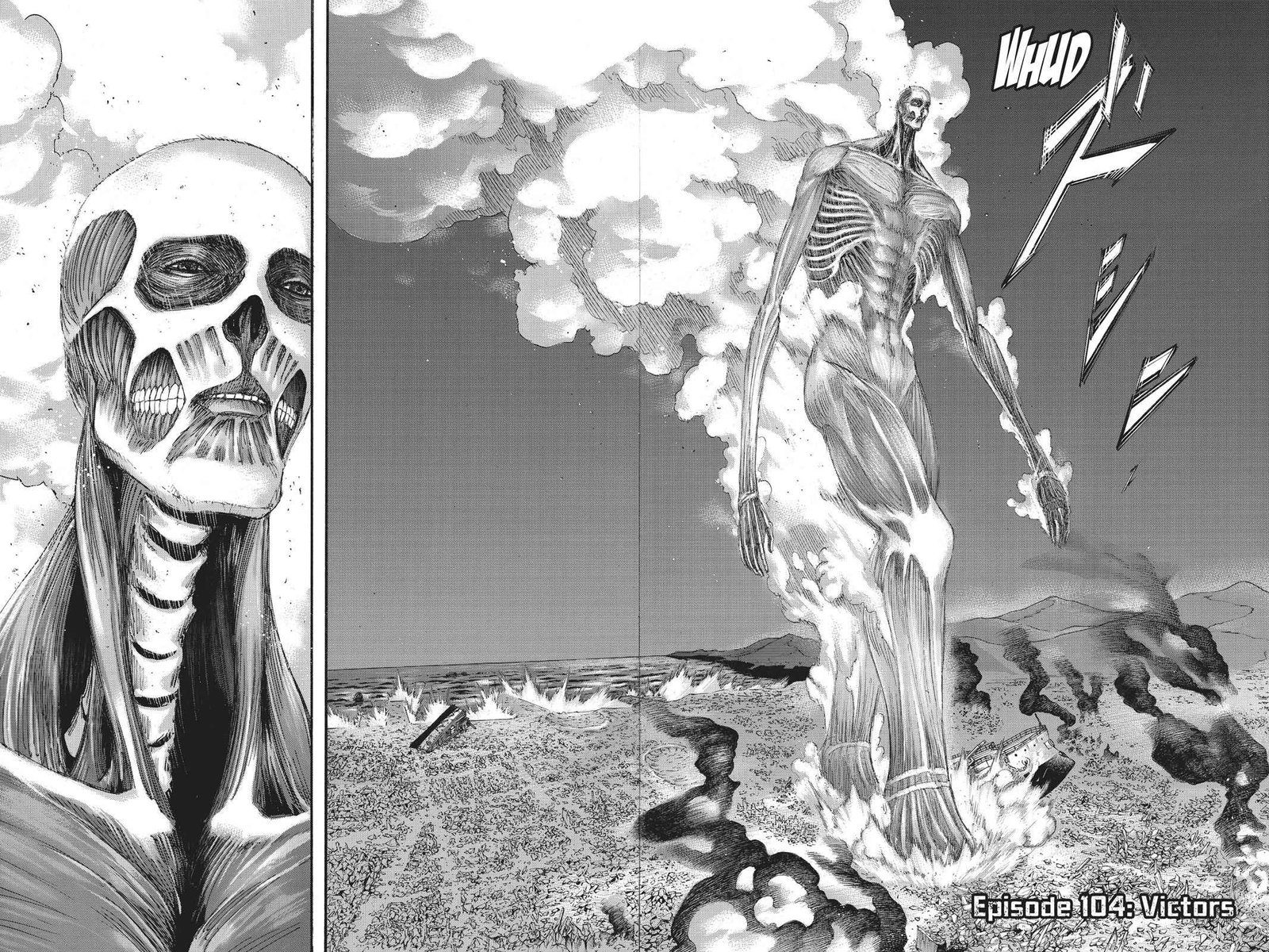 In this shot, we see Armin walking away from the shore into the city, right after destroying all of Marley’s fleet in a huge explosion.