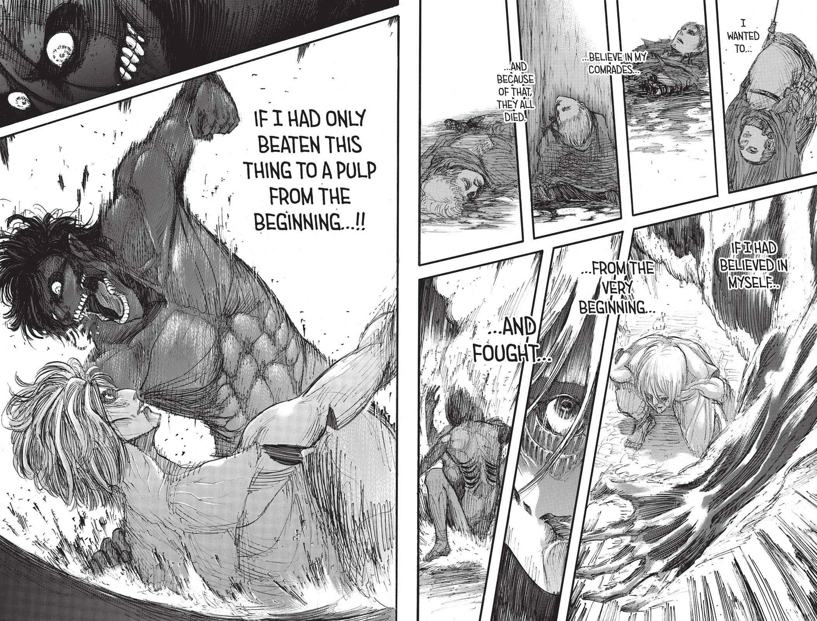 In this shot, we see a raging Eren, after realizing he should’ve turned into a titan before the Female titan killed the entire squad.